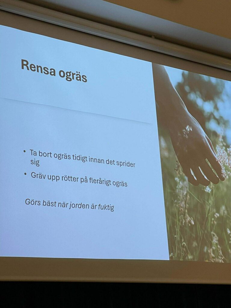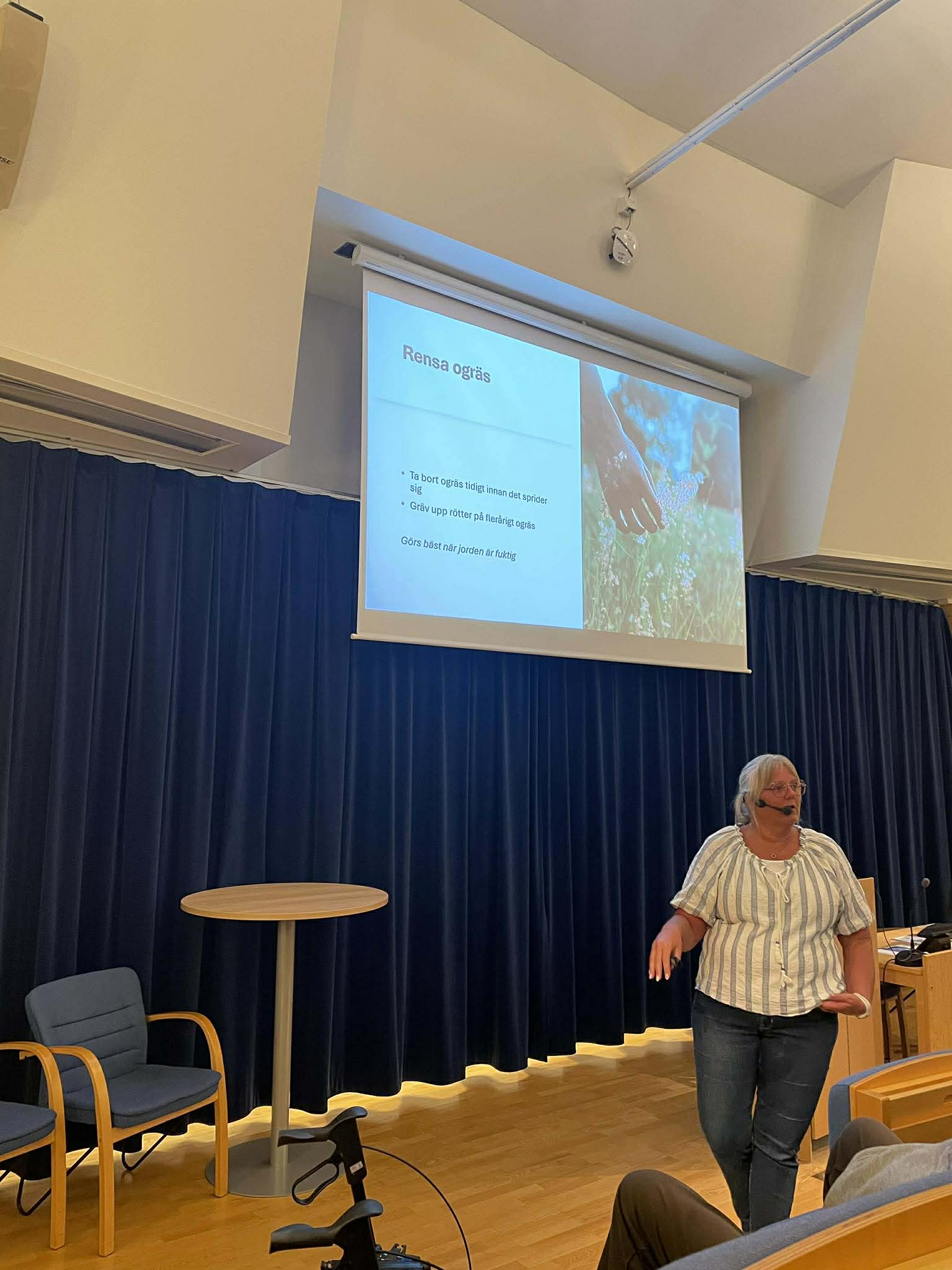 En annan viktig aspekt är hur vi i våra privata trädgårdar kan hjälpa till för att öka den biologiska mångfalden, tips på hur vi bygger insektshotell, vilka växter vi ska plantera och hur vi jobbar med våra jordar och komposter.