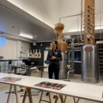 Josefine Solvang, hotellchef på Ellinge slott, tog emot oss tillsammans med en kollega. Vi delades upp i 2 grupper och fick en guidad tur i destilleriet och i det fantastiskt hemtrevliga slottet. Slottet används idag till konferenser och bröllop. I biblioteket såg vi böcker från 1560-talet, väldigt fint bevarade.
